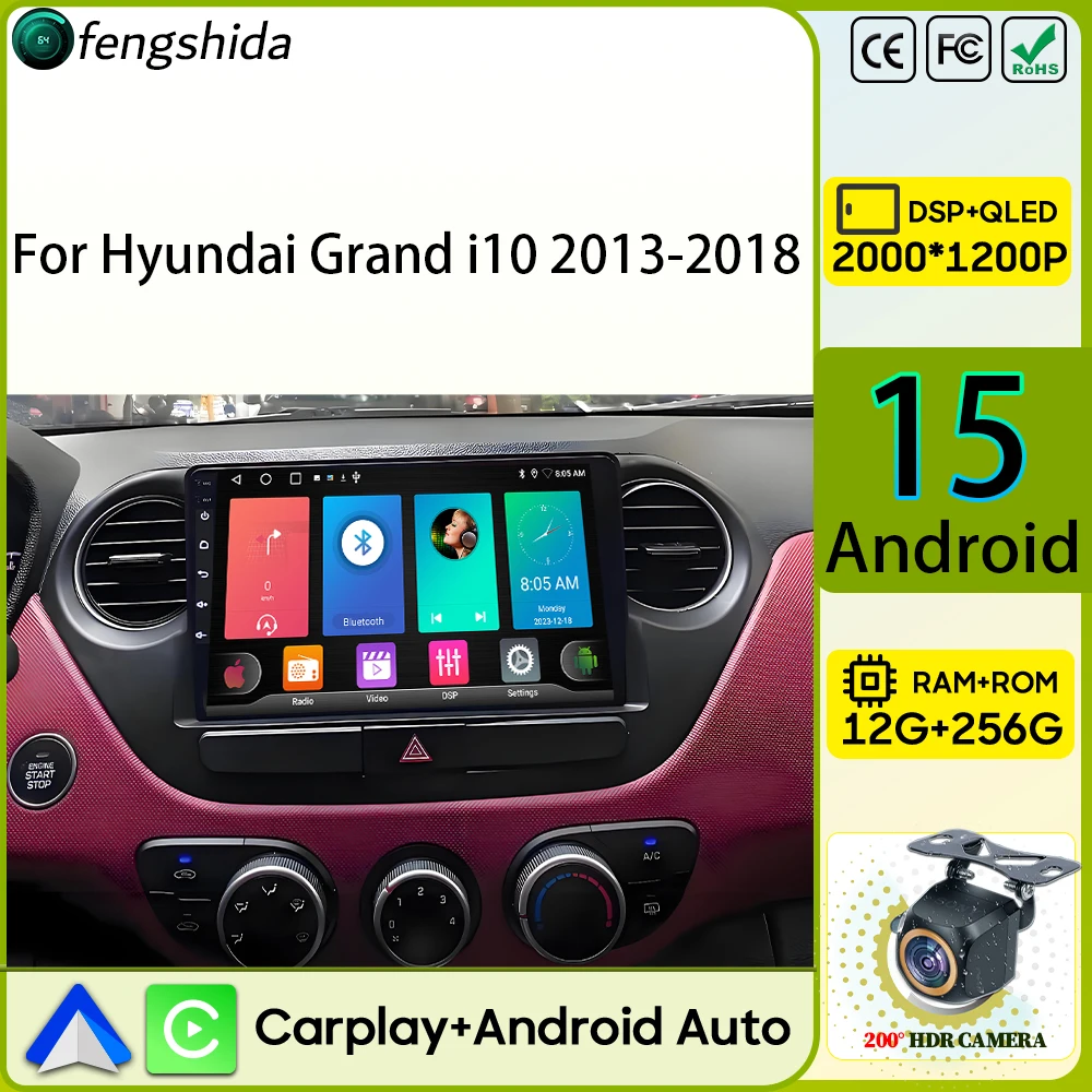 Car Radio Carplay For Hyundai Grand i10 2013-2018 Navigation GPS Android Auto Stereo Multimedia Player 5G Wifi Video DVD No 2din $94.15