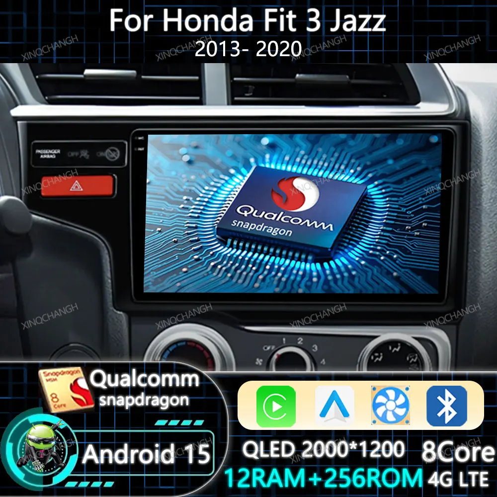 Android 15 Car Radio For Honda Jazz 3 2015 - 2020 Fit 3 2013 - 2020 Carplay Auto QLED Multimedia Stereo Video Player 4G WIFI BT $80.63