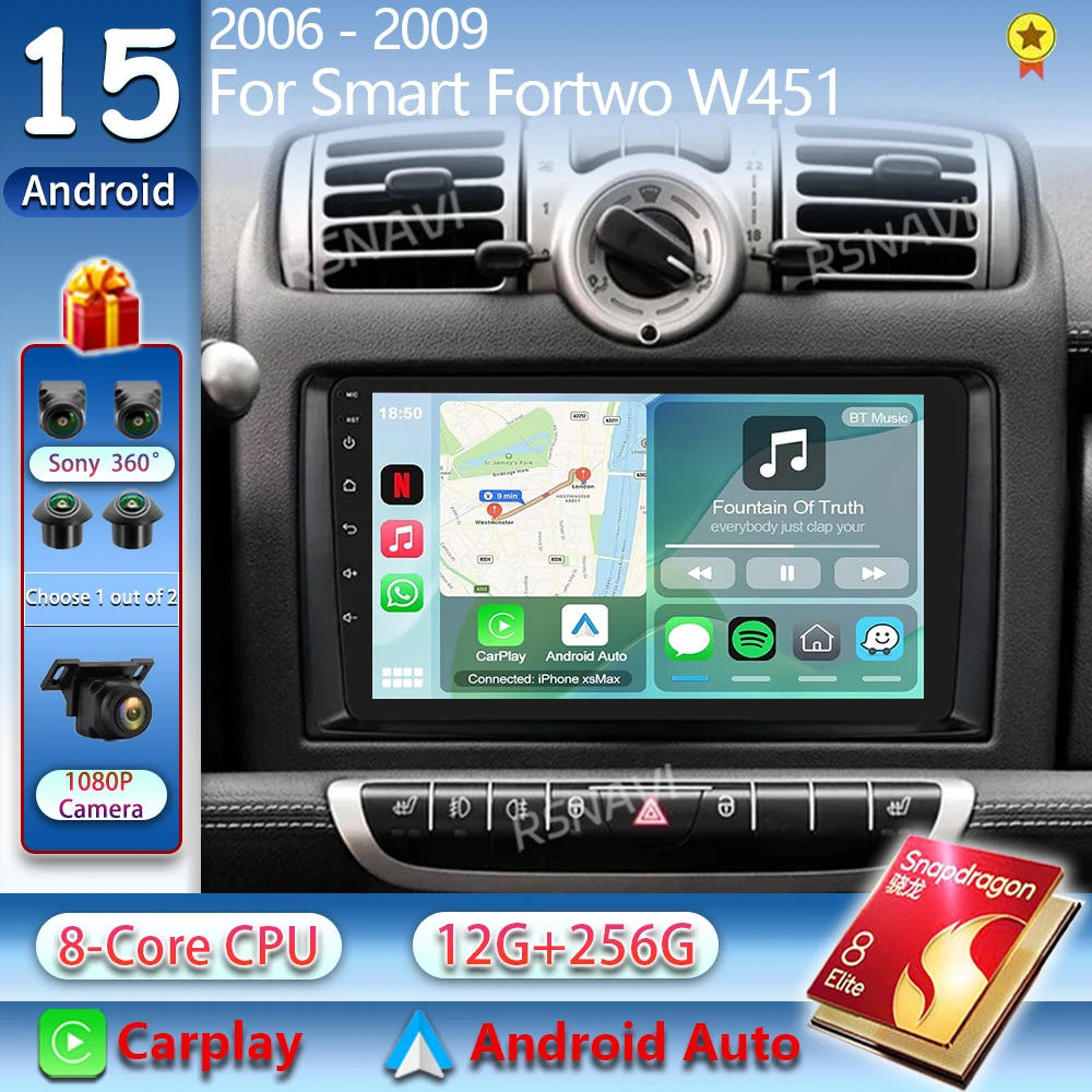 Android 15 Carplay For Smart Fortwo W451 2006 2007 2008 2009 Car Radio GPS Navigation Multimedia Video Player Stereo No 2Din DVD $84.95