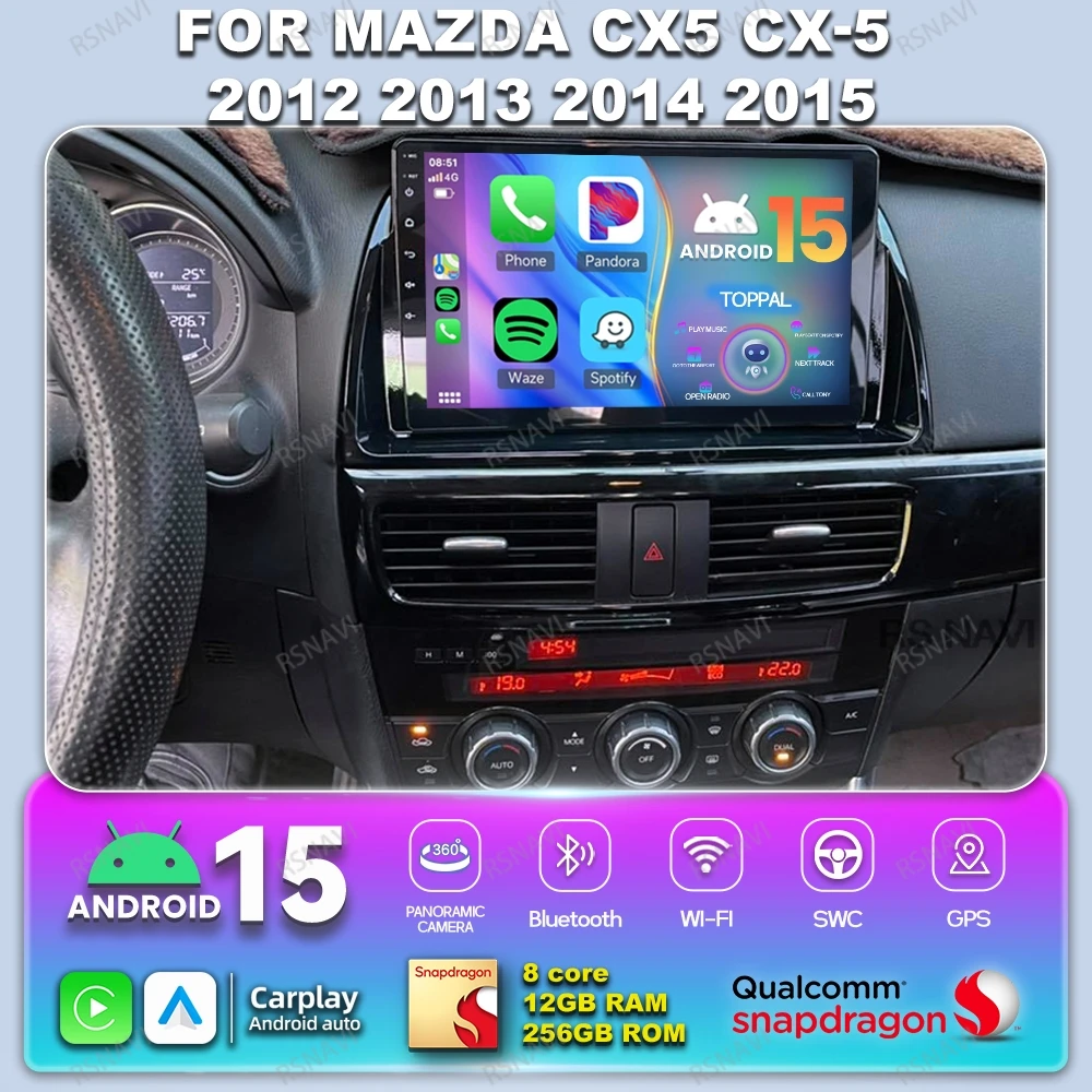 Car Radio Android 15 For Mazda CX5 CX-5 2012 - 2013 - 2014 - 2015 Snapdragon BT Stereo DSP Systems DVD Head Unit Qualcomm 4G LTE $148.84