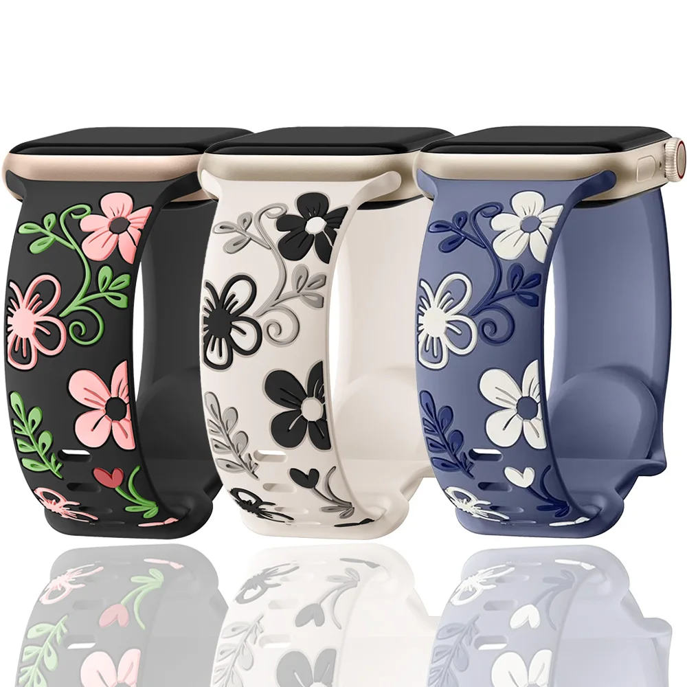 Engraved Strap For Apple Watch Band 45/44/42/41/40/49/46/38mm Silicone Correa Bracelet iWatch Series 10 9 8 7 SE 6 5 4 Ultra2 $20.08