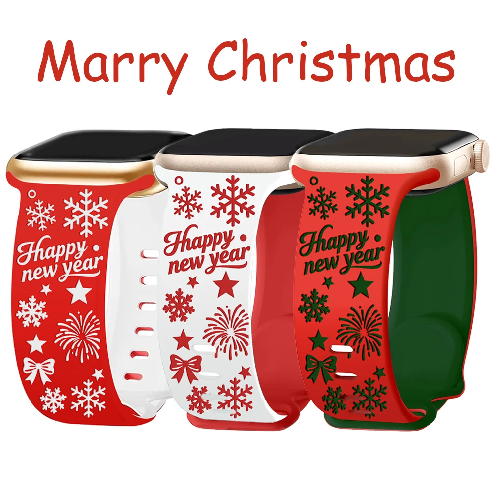 Engraved Band for Apple watch Strap 46mm 44mm 42mm 45mm 41 40 49mm Christmas bracelet correa iWatch series Ultra 3/11/10/9/8/SE $3.30
