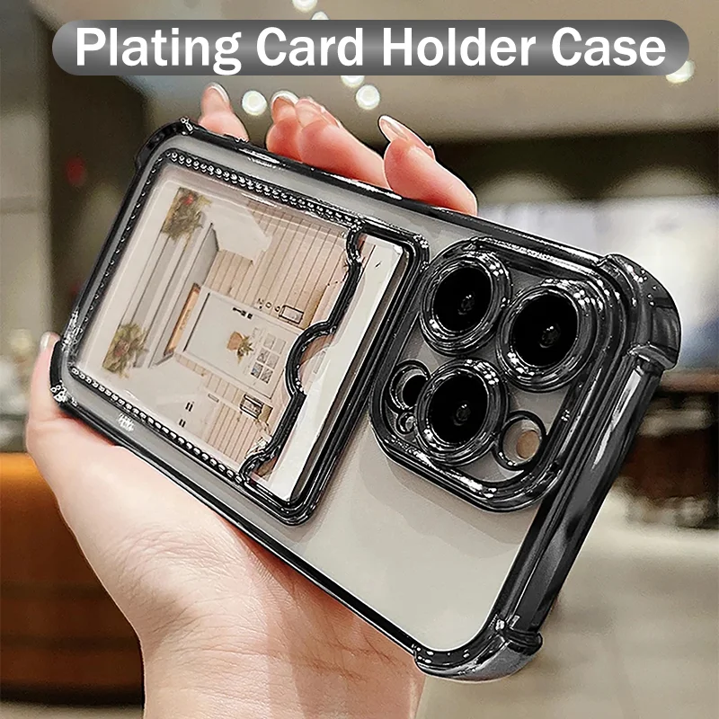 Case For Apple iPhone 15 13 14 12 11 Pro Max Plus Plating Soft Card Holder Cover Transparent Phone Protection Useful Accessory $3.69