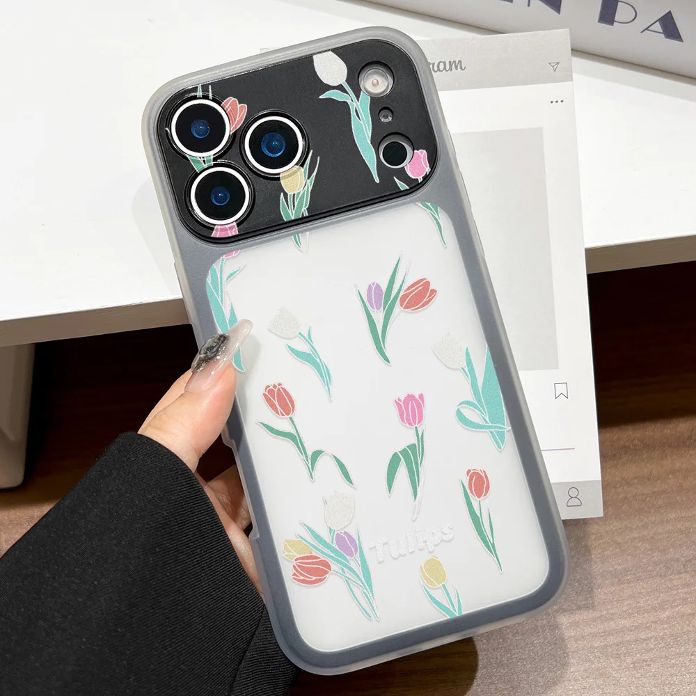Pink Tulip Flower Phone Case For iPhone 17 Pro Max 16 14 13 15 Pro Max 17 Air Soft TPU Transparent Flower Cover Matte Fundas $4.46