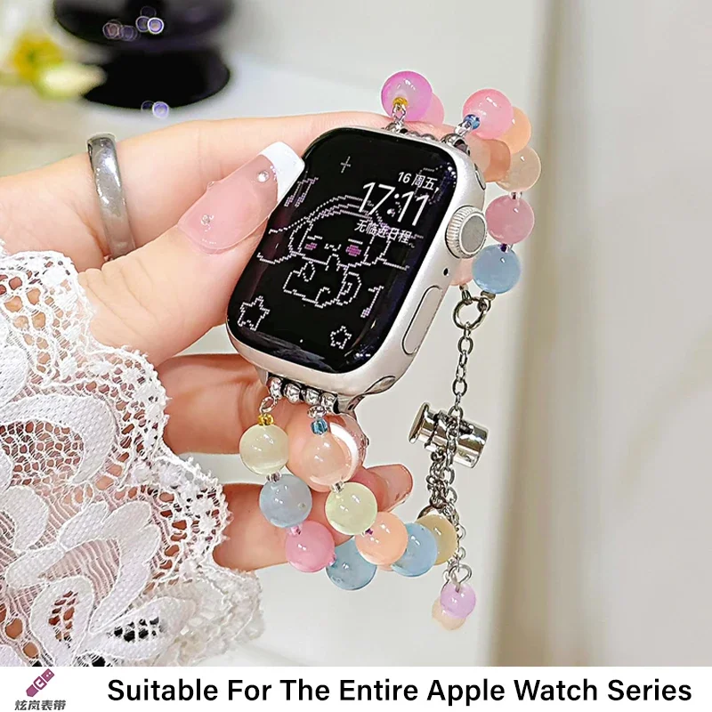New Style Grape Beads For Apple Watch Band 42mm 45mm 46mm 41mm 40mm Handmade Beaded Bracelet Replacement iWatch 7 8 S9 Strap $12.44