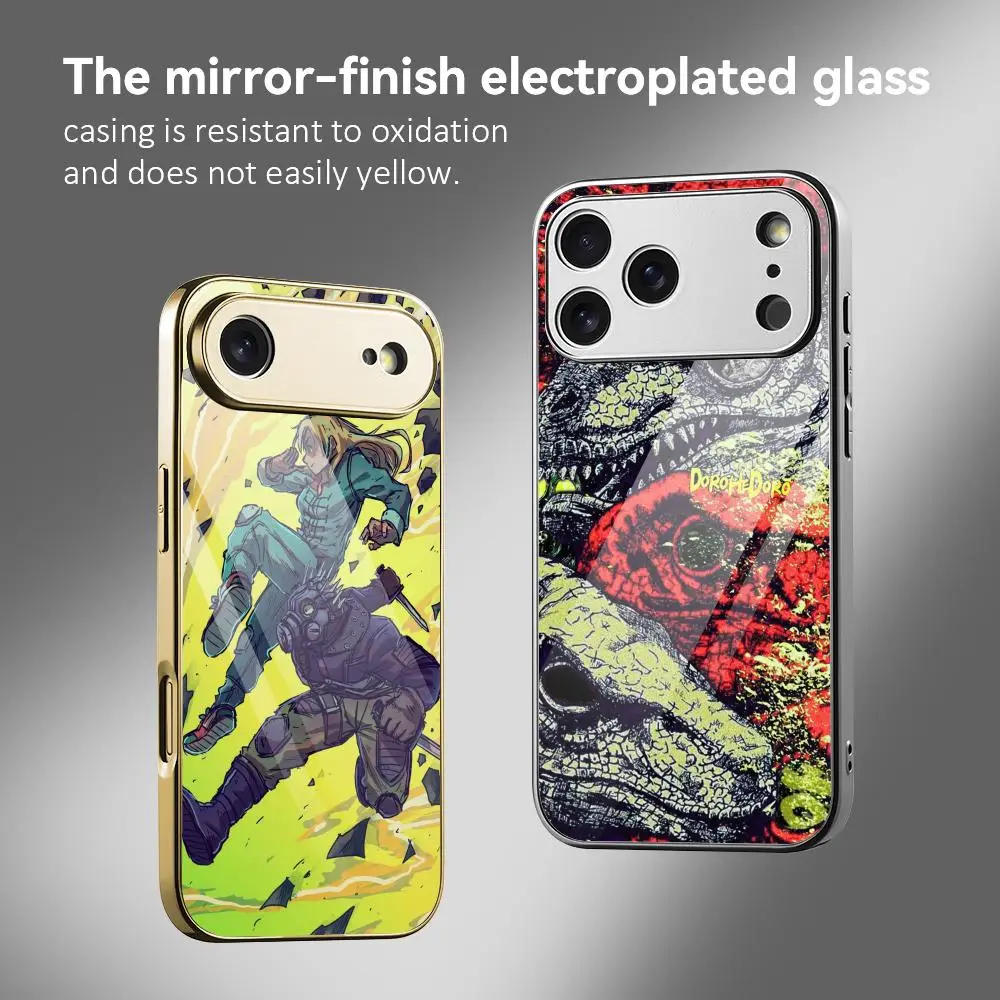 Anime D-Dorohedoro Retro Phone Case For IPhone 12–17 Series Electroplated Metal Bumper With Tempered Glass Back $5.52