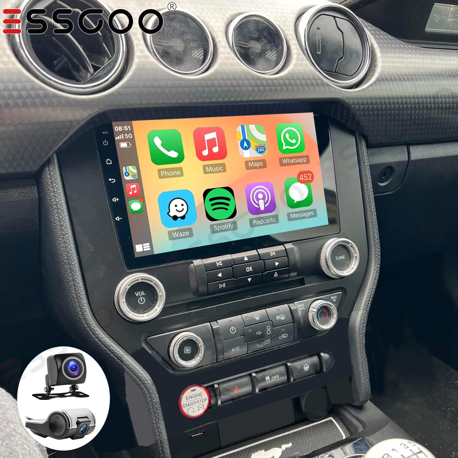 4+64G For Ford Mustang 2015-2020 9" Android 15 Apple Carplay Car Stereo Radio GPS Navigation WIFI Head Unit Touch Screen+DVR&CAM $24.34