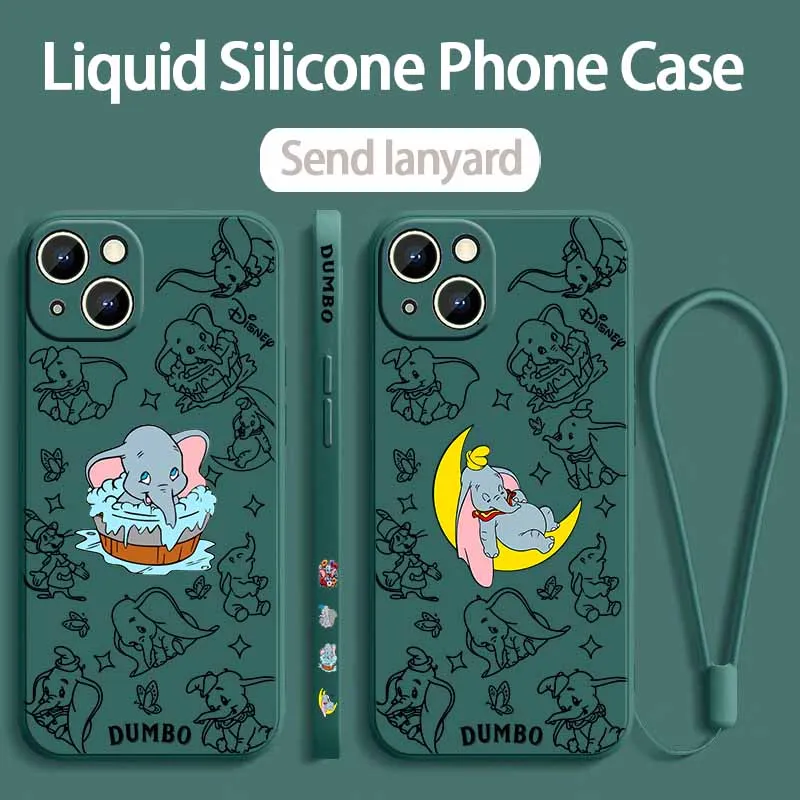 Anime D-umbos Cute Cover For Apple iPhone 17 Air 16E 16 15 14 13 12 mini Pro Max Plus Liquid Left Rope Phone Case $5.01
