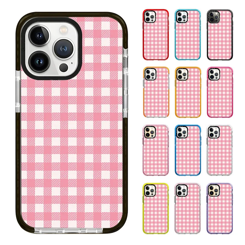 Pink Plaid Phone Case For iphone 17 16 15 14 13 12 11 Pro Max Plus Air Soft TPU Shockproof Back Cover $4.83