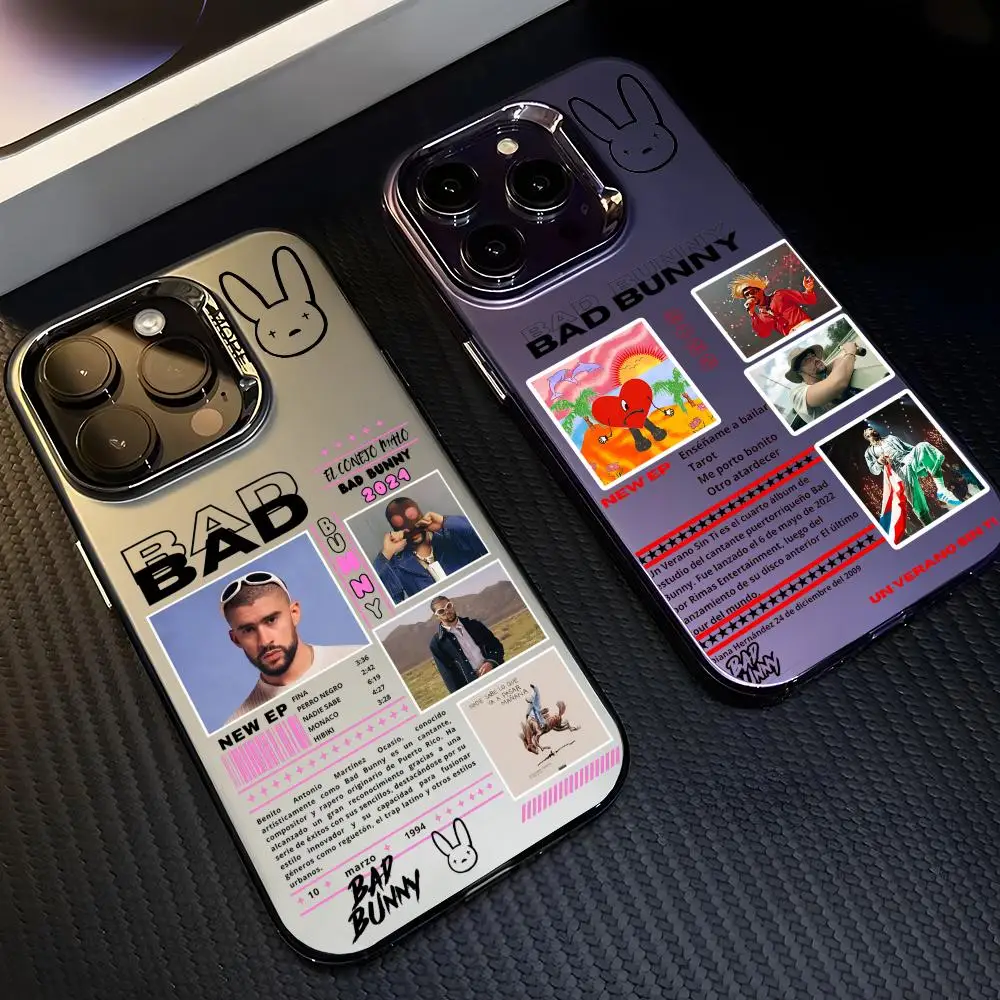B-Bad Bunny Art Album Phone Case For iPhone 17 16 15 14 13 12 11 Pro Max Designer Matte Laser Aurora Funda Phone Case $4.22