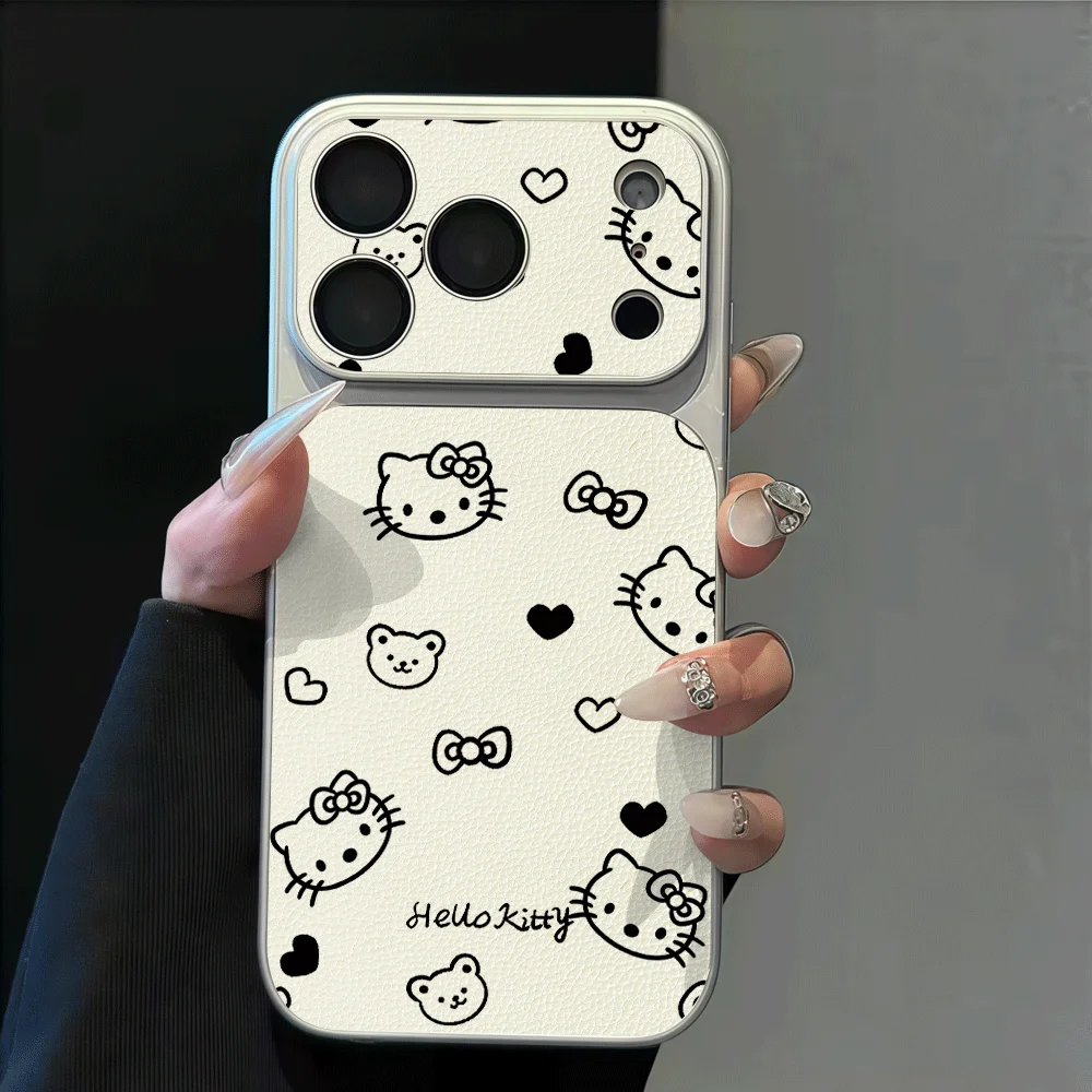 Minimalist Hello Kitty Leather Phone Case For iPhone 17 16 15 14 13 12 11 Pro Max X Xs XR Max 7 8 Plus Shockproof Bumper Cover $3.92