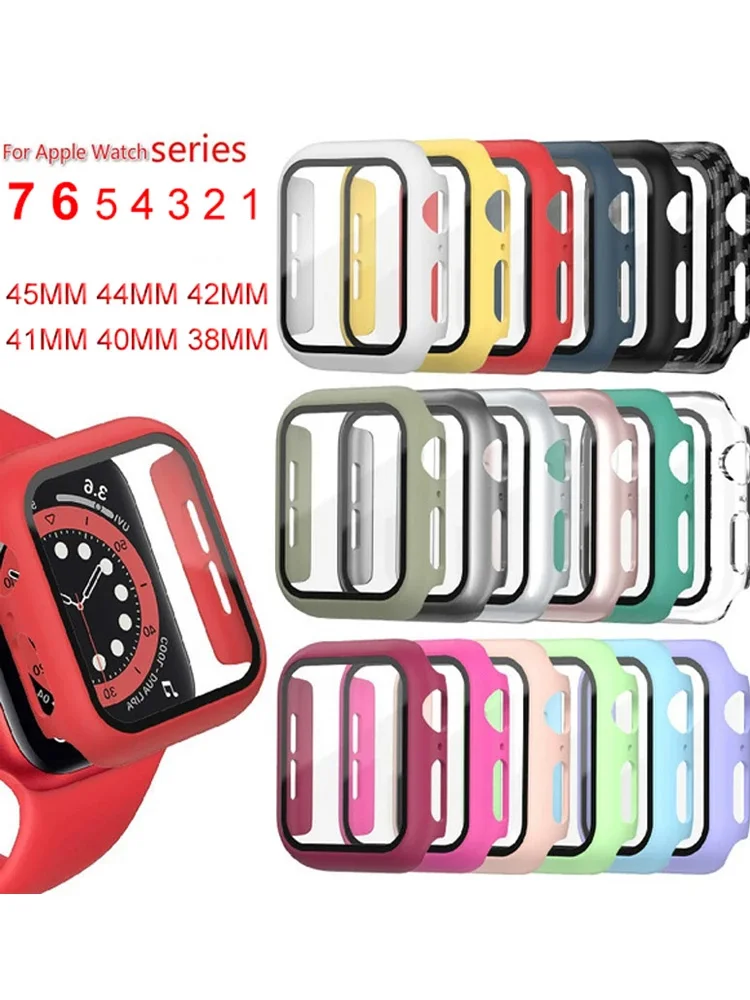 Tempered Glass+cover For Apple Watch 8 44mm 40mm 42mm 38mm PC bumper Screen Protector Case iWatch series 7 6 5 4 3 se 41mm 45mm $3.24