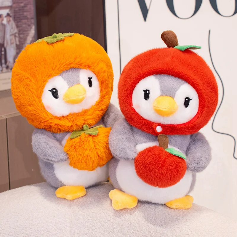 28CM Lovely Cartoon Anime Fruit Penguin Plush Doll Kawaii Apple Persimmon Penguin Stuffed Toy Children's Cute Sleeping Doll Gift $14.82
