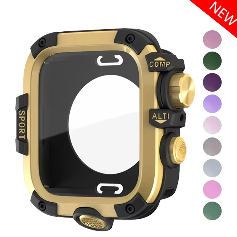 Metal Bumper Case For Apple Watch 45mm 44mm 46mm 49mm Protector Frame Cover Tempered Film For IWatch Series 10 9 8 7 6 SE Ultra $11.35