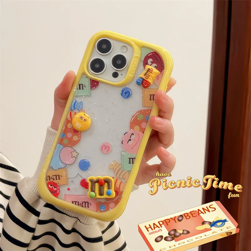 Korean 3D Cartoon Chocolate Glitter Drop Glue Phone Case for iPhone 16 15 14 13 Pro Max Transparent Shockproof Protective Cover $5.76