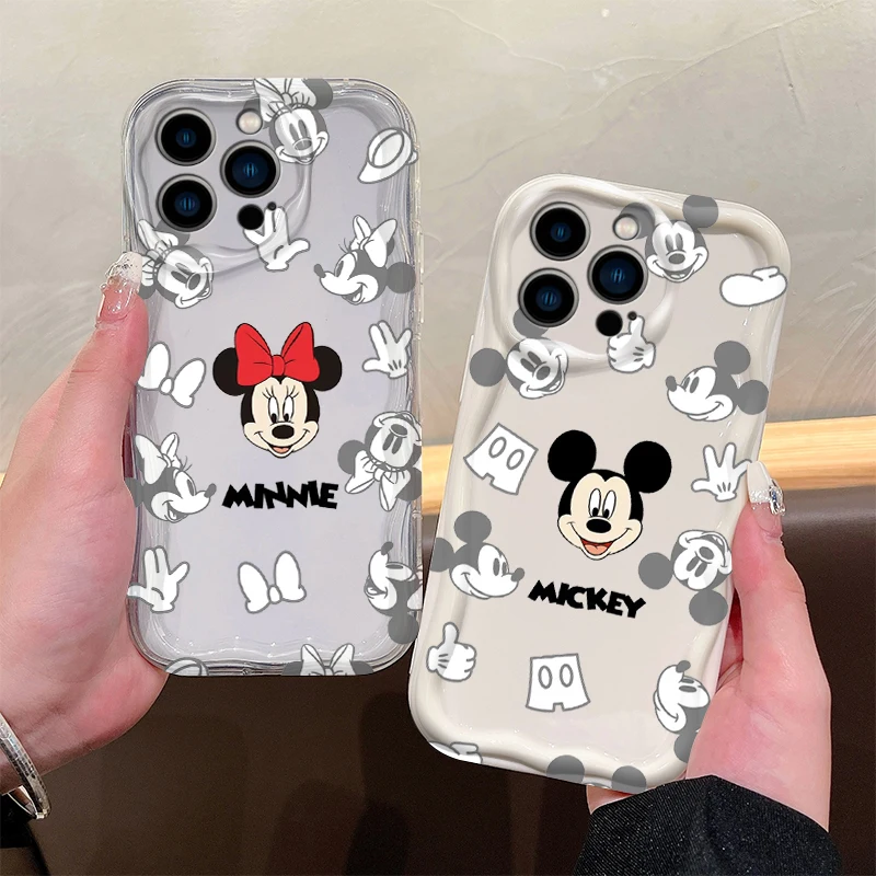Mickey Minnie Couple Clear Wavy Silicone Phone Case for IPhone 16 15 14 13 12 11 Pro Max Plus 16E XR XS X 7 8 Shockproof Cover $2.99