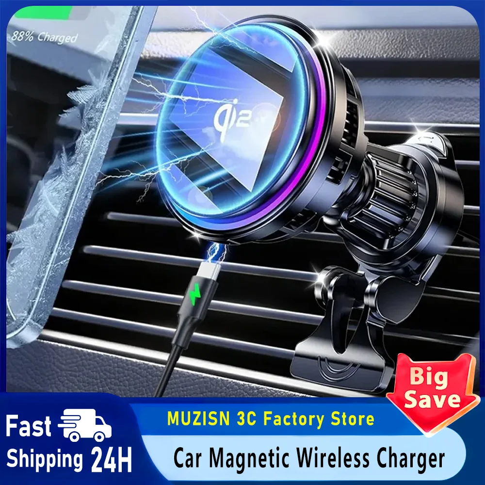 QI2 Magnetic Fast Charging Radiator Car Charger Phone Holder Ice Cooling RGB Tempered Glass For Magsafe iPhone 12-16 $22.70