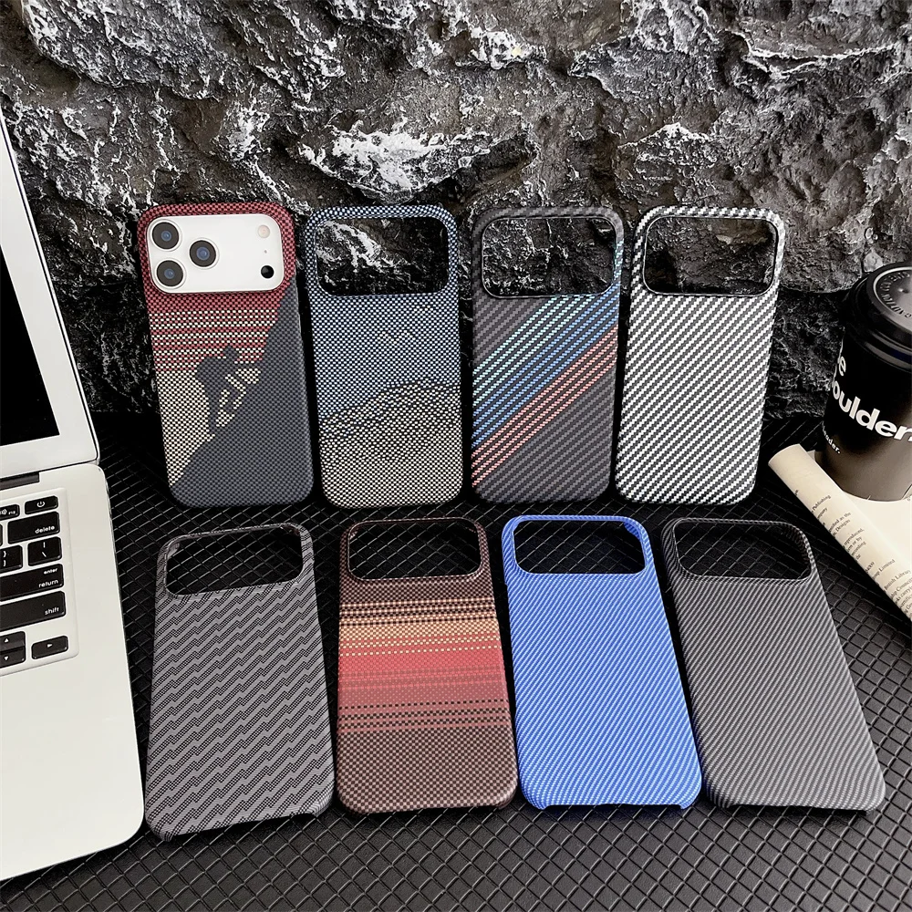 Carbon Fiber Kevlar Texture Phone Case for IPhone 17 Air 16 15 14 Plus 13 12 11 Pro Max Hard Plastic Half Pack Protective Cover $3.79