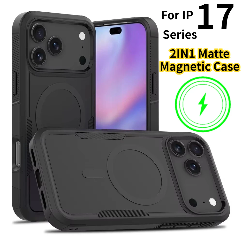 Premium 2IN1 Heavy Armor Magnetic Charging Case for IPhone 17 Air 16 15 14 Plus 13 12 Pro Max Shockproof PC Matte Protect Cover $6.11