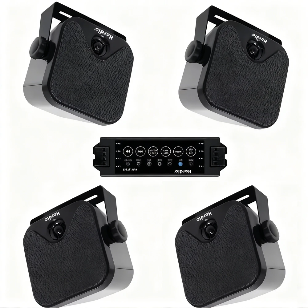 Herdio 4 Inch 4PCS 240W Bluetooth Golf Cart Speakers Waterproof Marine Stereo Sound System for Outdoor Boat ATV UTV Jeep Patio $73.50
