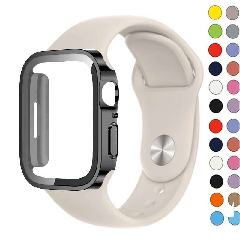 Watch Case Band For Apple Watch strap 44mm 45mm 40mm 41mm 45 mm sport Silicone bracelet iwatch series 8 7 6 5 4SE 9 Ultra 2 49mm $4.63