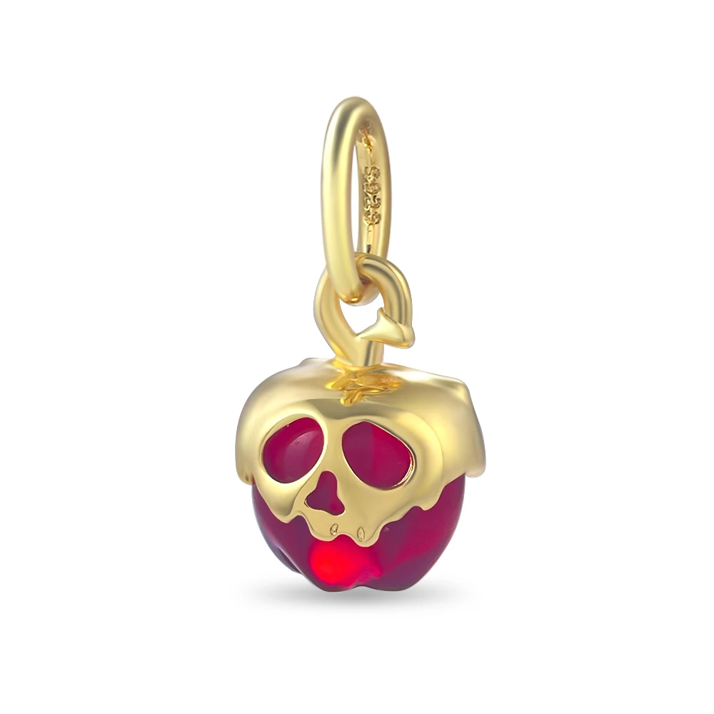 Gold Plated Poison Apple Charm Bead, Red Transparent Evil Apple Dangle Bead Fits European Bracelet Nice Spooky Halloween Jewelry $4.15