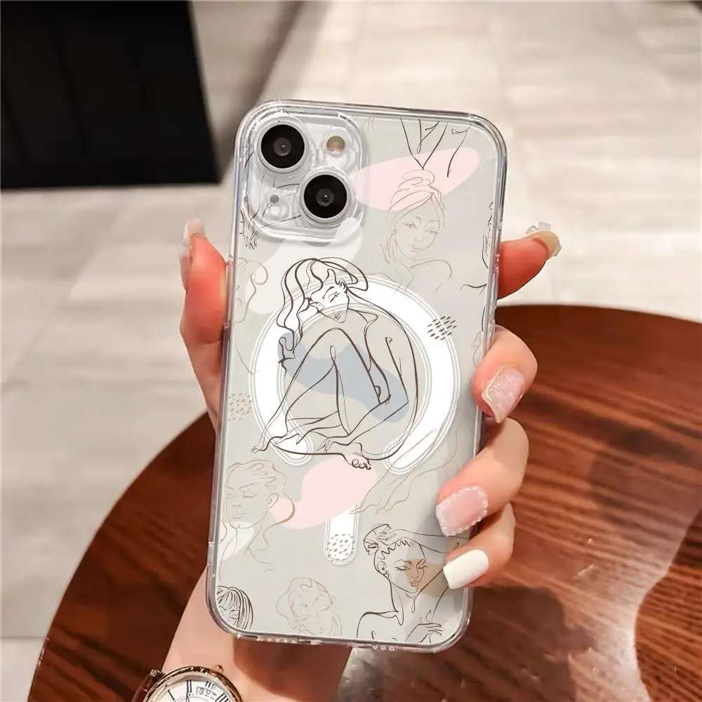 Gril Line Art Phone Case For iPhone 17 16 15 14 13 12 Pro Max Plus Magnetic Clear Case Slim Wireless Charging $3.44