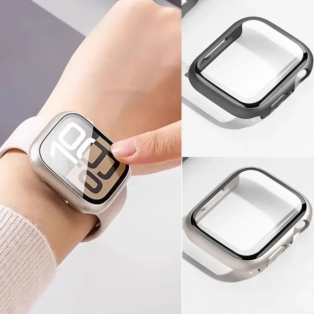 Case For Apple Watch Accessories 42mm 46mm Series 10/9/8/7/6/5/4/SE Hard PC bumper Tempered Glass iWatch 2 Pack Screen Protector $3.10