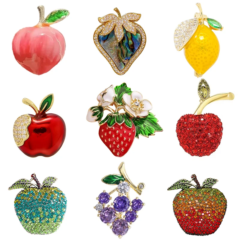 Romantic Fruit Brooches for Women Men Fashion Strawberry Apple Peach Grape Pin Office Party Casual Accessory Jewelry Gift $1.21