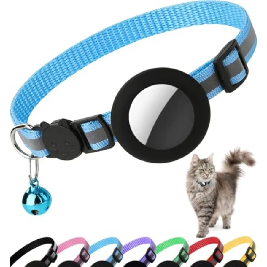 Airtag Cat Collar Breakaway Reflective Kitten Collar with Apple Air Tag Holder and Bell for Girl Boy Cats 0.4 Inch in Width and $9.01