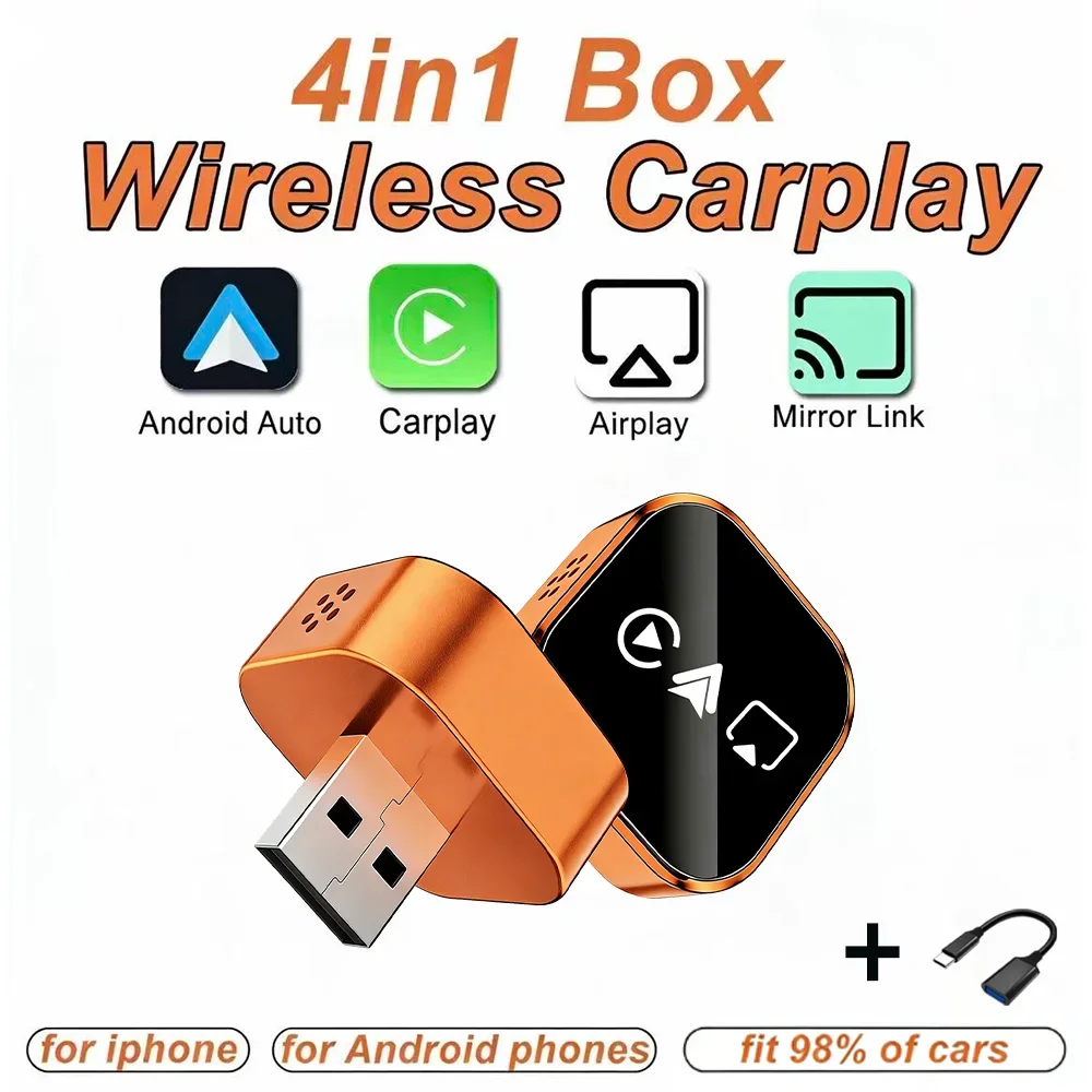 2026 Upgrade 4-In-1 Wireless Carplay Adapter Mini Compact Plug Play Dual Band WiFi BT Compatible With Apple Android Auto $21.89