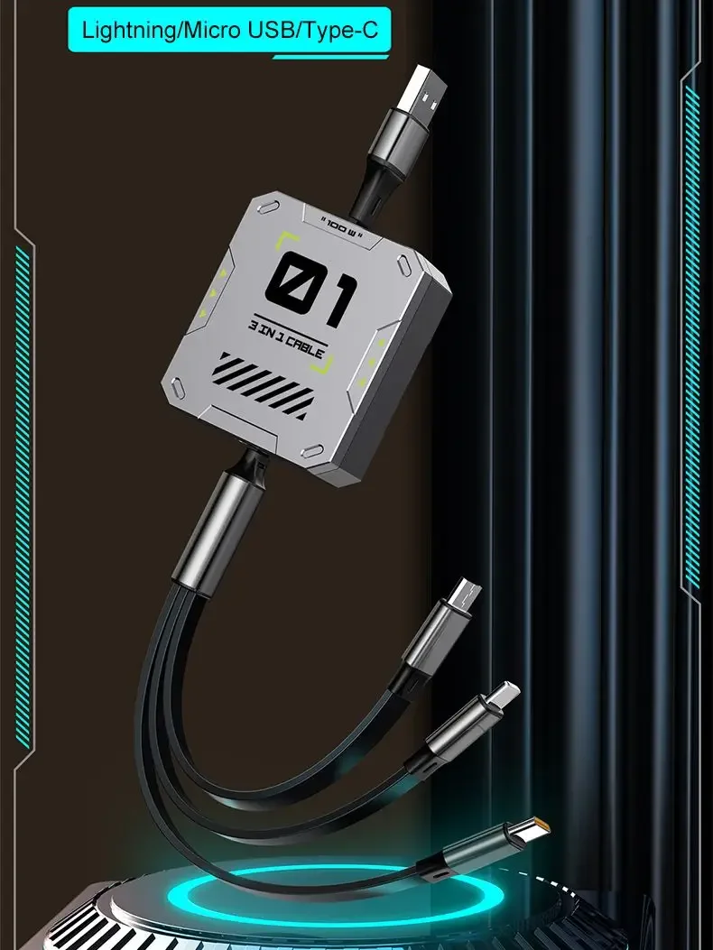 One to three data cable fast charging suitable for Apple, Android, Huawei Typec phone holder, retractable storage charging cable $5.29