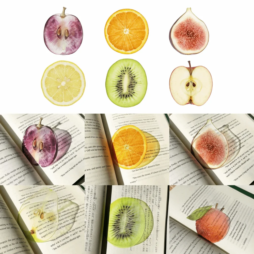 Cute Delicate Apple Bookmark Premium Feeling Transparent Reading Mark Unique Grape Tomato Bookmarks Reading Accessory $2.70