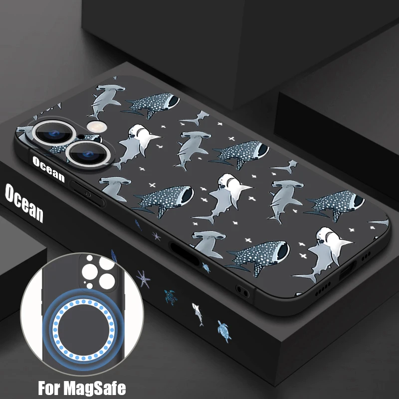 Cartoon Sharks Soft Silicone Magnetic Case For iPhone 16e 16 15 Pro 14 13 12 Pro Max 11 For Magsafe Wireless Charge Phone Cover $4.26