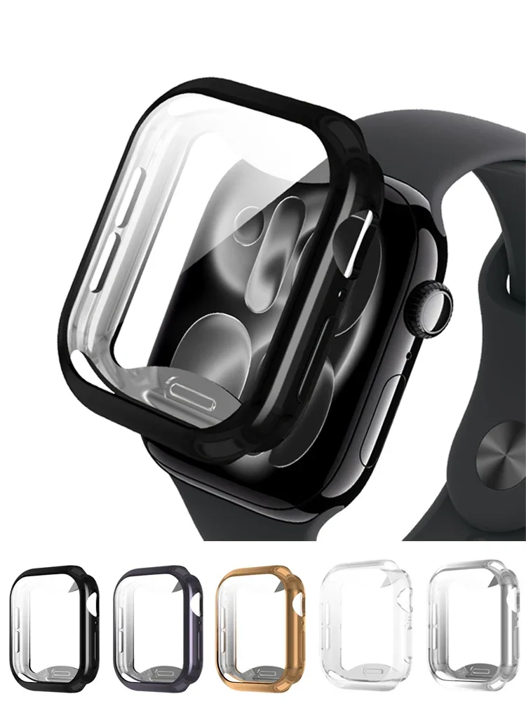 Glass+Case for Apple Watch 44mm 40mm 46mm 45mm 41mm 42mm Screen Protector Cover Change Ultra Bumper iWatch Series 9 8 7 SE 10 11 $14.91