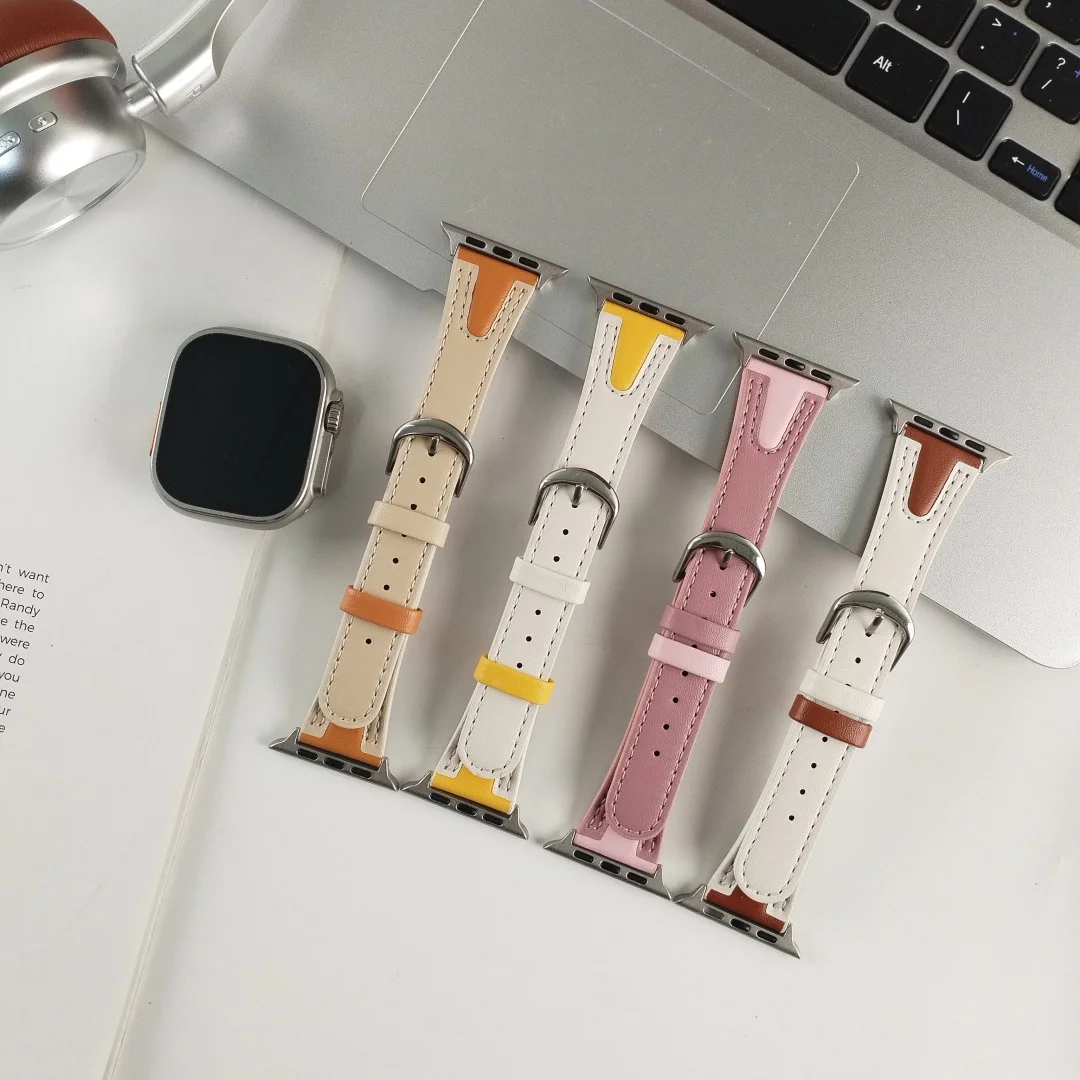 Leather Band for Apple Watch Series 11 10 9 8 7 6 5 4 SE Slim Strap for Iwatch 38mm 40mm 41mm 42mm 45mm 49mm Two color Bracelet $8.85