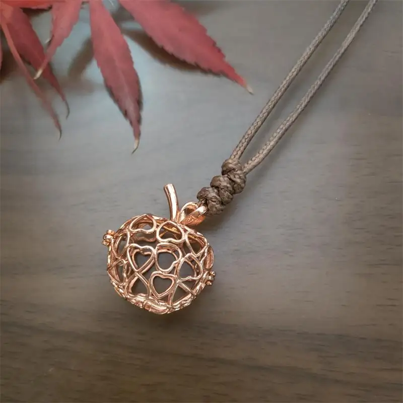 Wax Cord Braided Pendant Necklace Lovely DIY Hollowed Apple Locket Fashion Essentional Oil Diffuser Necklace Gift for Girls $3.92