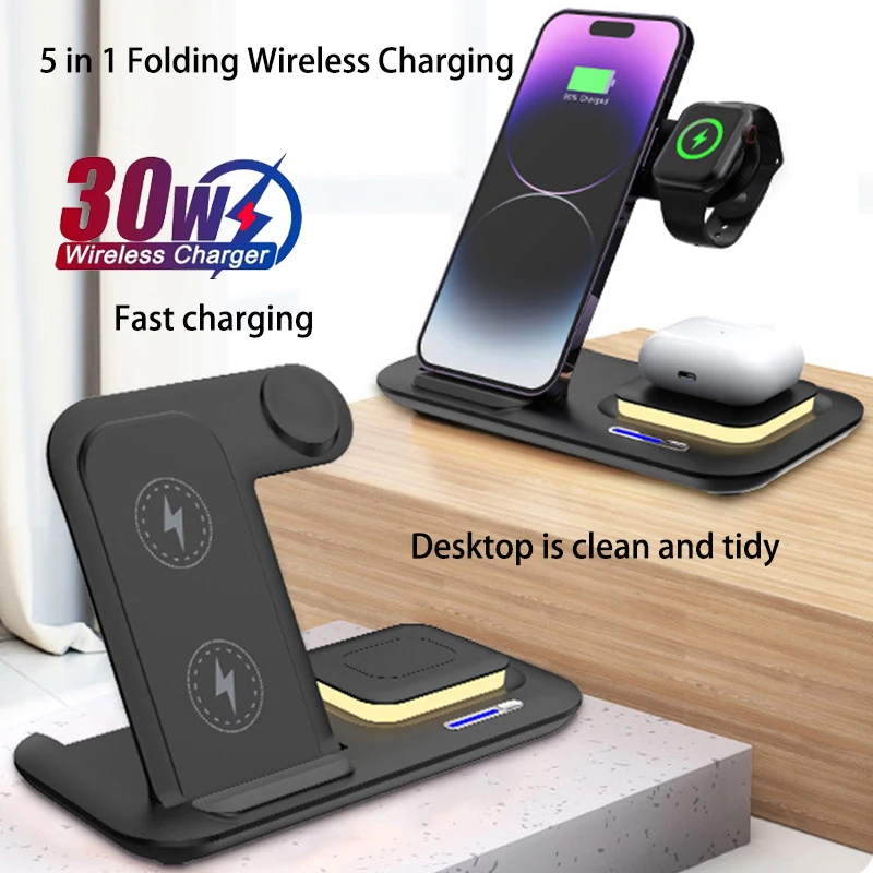 Hot 3 in 1 Mobile Phone Foldable Wireless Charger Station 2025 New Products 30W Qi 2 Travel Fast Charging Station with Lights $15.62
