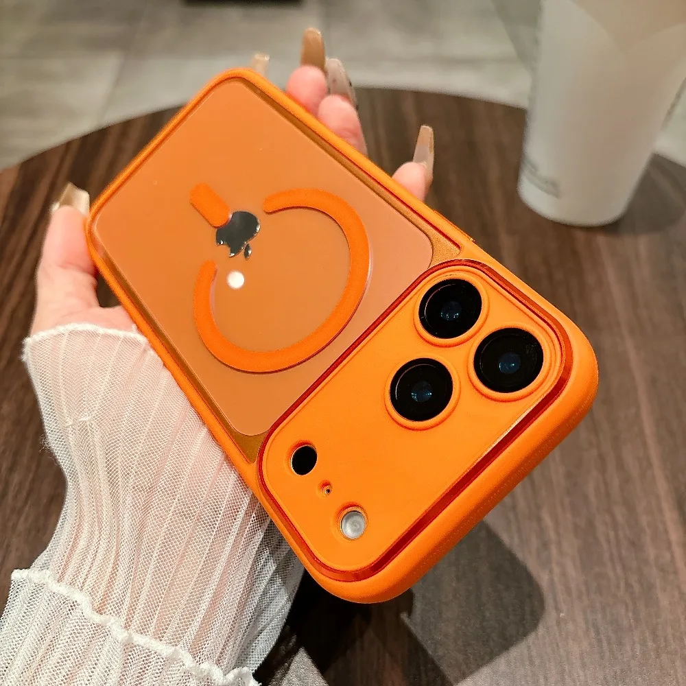 Vivid Orange Print Magnetic Phone Case for iPhone 17 Pro Max Carbon Color Hard PC Back Cover Camera Metal Frame Protection Shell $9.45