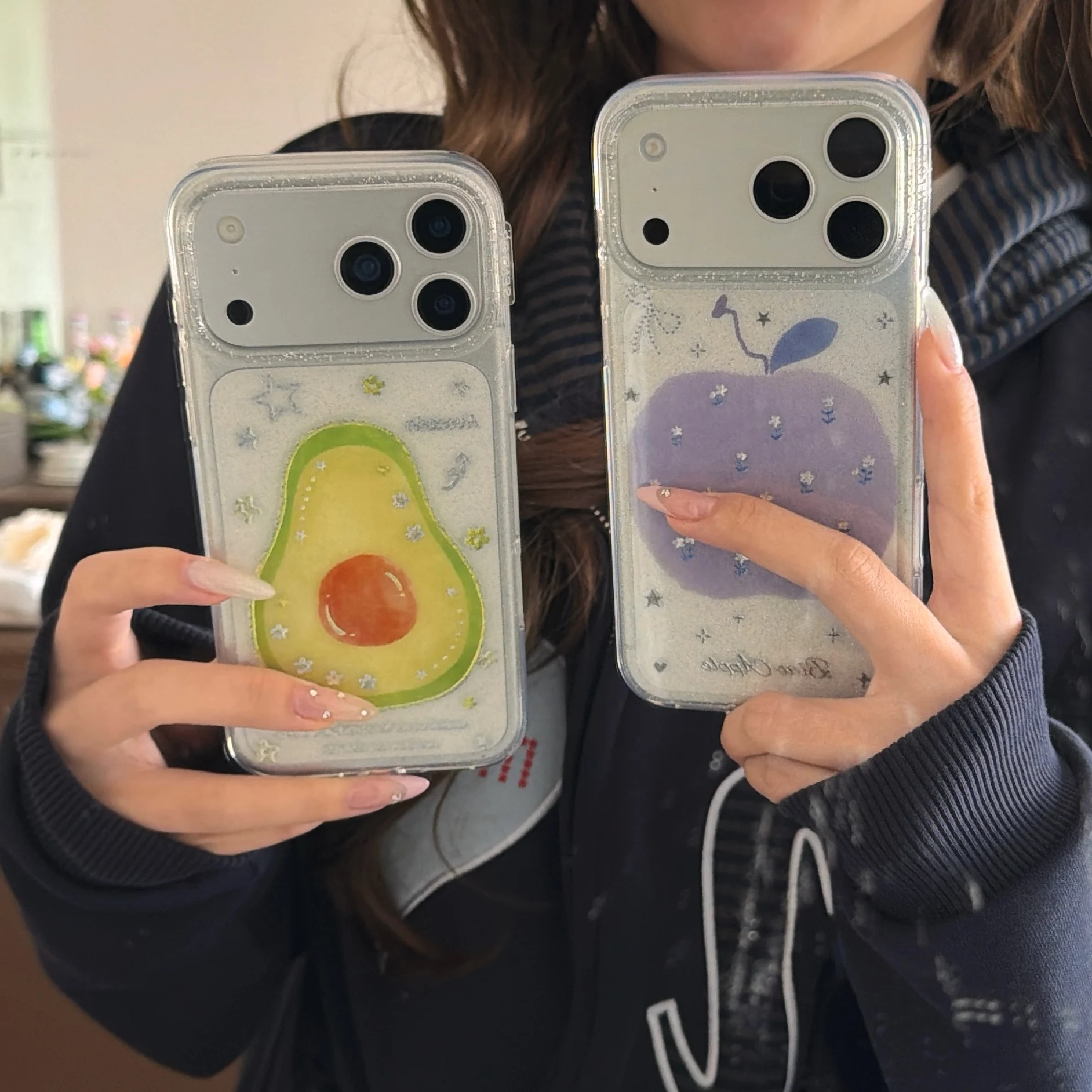 Korean Ins Cute Fruit Avocado Purple Apple Glitter Transparent Phone Case for iPhone 17 16 15 14 13 Pro Max Back Cover Fund $7.69