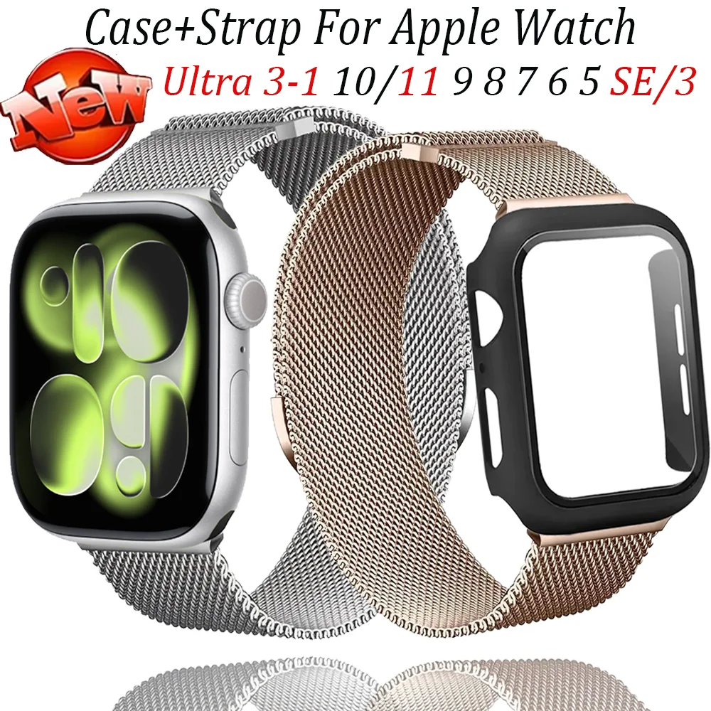 Case+Milanese Strap For Apple Watch Ultra 3-1 49mm 10/11 46/42mm Protector Shell IWatch 9 8 7 6 5 4 SE/3 45/41/44/40mm Wristband $4.98