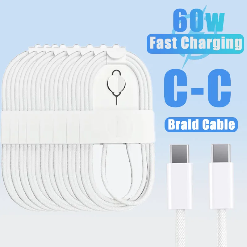 1-25Pcs 60W Type C to Type C Weaving Fast Charging Cable For Apple iPhone 17 16 15 14 13 12 11 Pro Max Air Weaving Data Cables $3.87