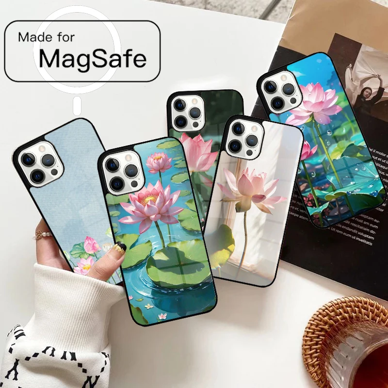 Summer Lotus soft Magnetic Phone Case For iPhone 17 Air 16e 12 13 14 15 Pro Max Magsafe Wireless Cover $3.87