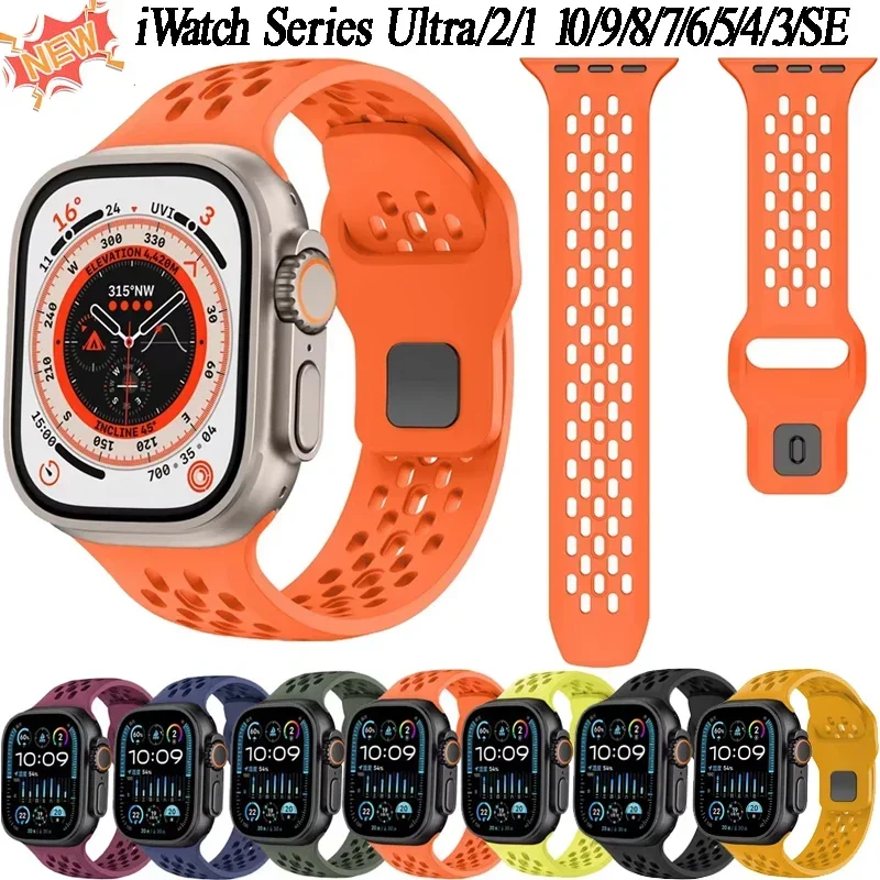 Silicone Strap For Apple Watch Ultra 2/1 49mm 10 46mm 42mm Breathable Bracelet iWatch Series 9 8 7 6 5 4 SE 45mm 44mm 41mm Belt $3.50