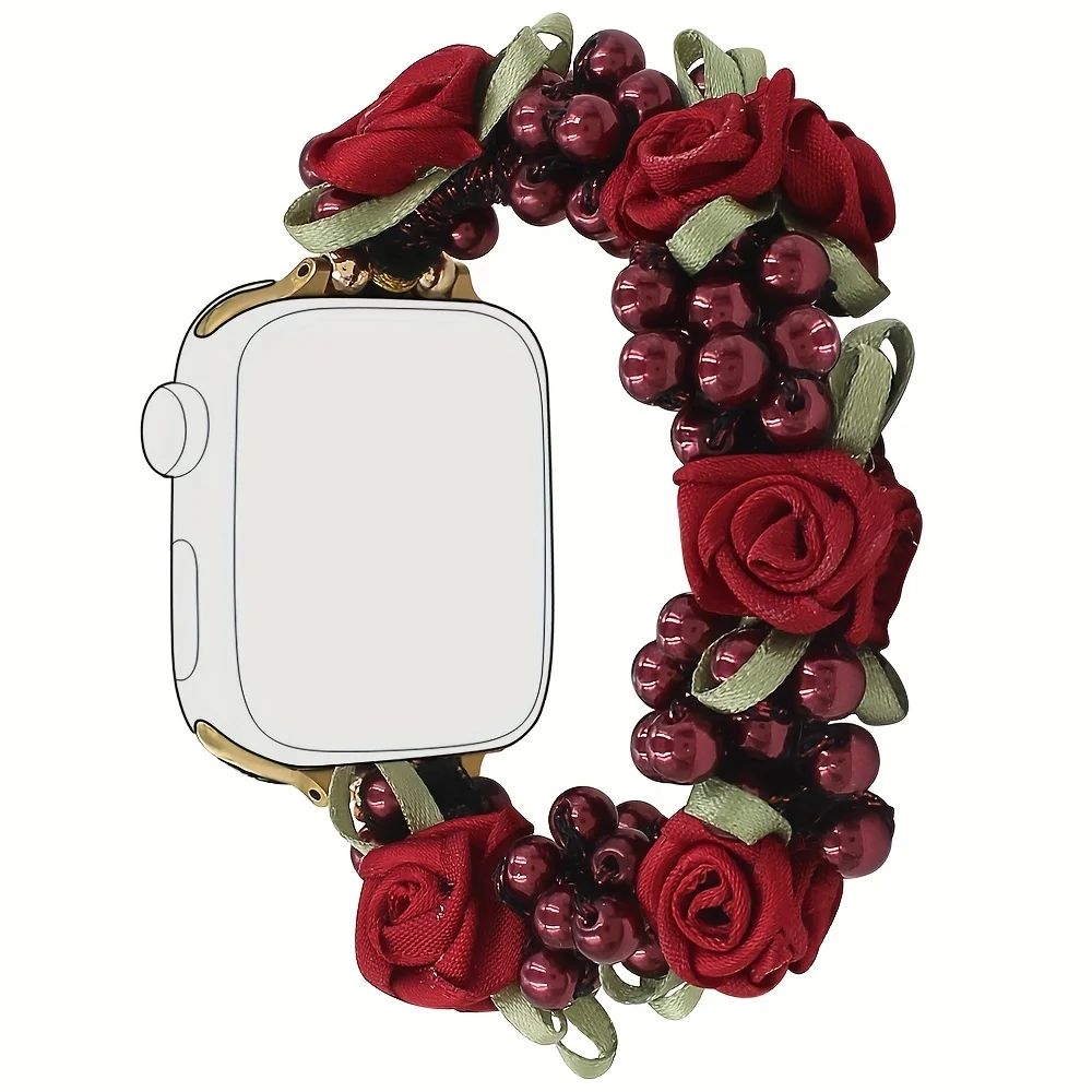 Floral Pearl Gorgeous strap for Apple Watch Bands 40/41/42/44/45/46/49mm elegant braided loop for women iWatch 11 10 9 8 SE 7 6 $5.69