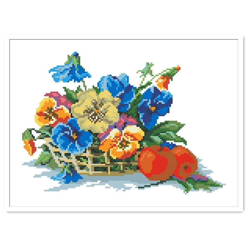 Pansy and apple cross stitch kit flowers 18ct 14ct 11ct white fabric cotton thread embroidery DIY handmade needlework $6.32