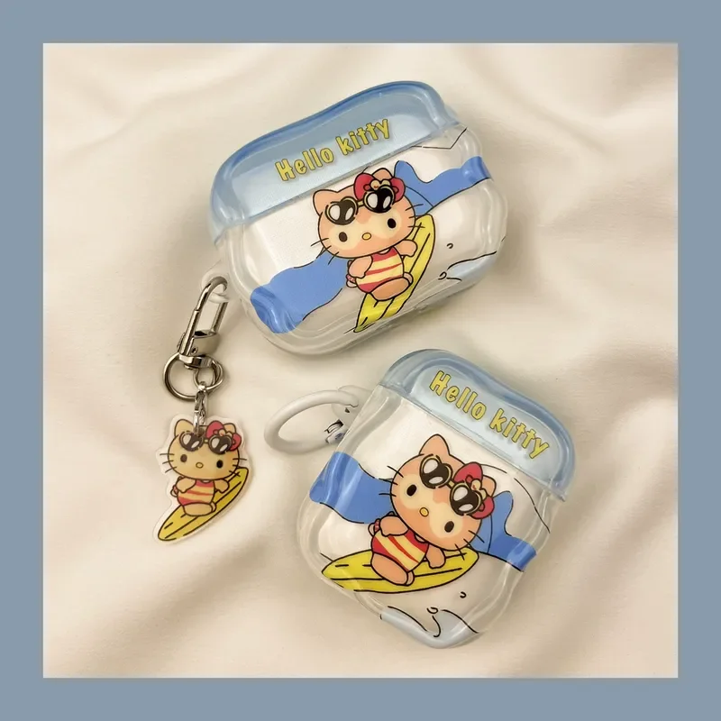 Summer Cute Surf KT Apple AirPods1/2 Wireless Bluetooth Earphone Protective Sleeve Little Dog Hollow Bone Pendant Pro2 Accessory $6.92