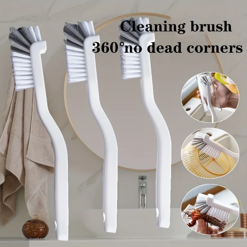 2pcs Cleaning Brush Set for Kitchen Appliances - Medium Firmness, Plastic Material, Long Handle, Bathroom Tiles, and Corners $1.95