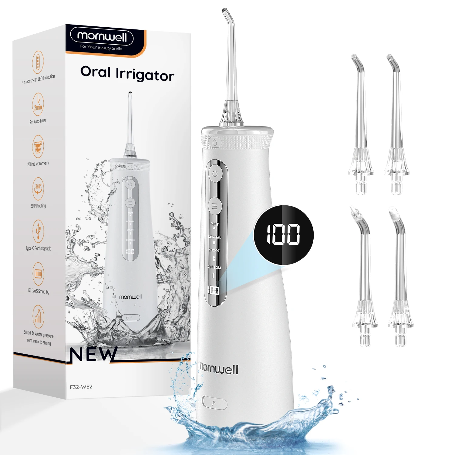 Mornwell 5032 Oral Irrigator Sonic Water Flosser 270ML Tank Dental Teeth Whitening Home Appliance Teeth Cleaner Dental Water Jet $32.91