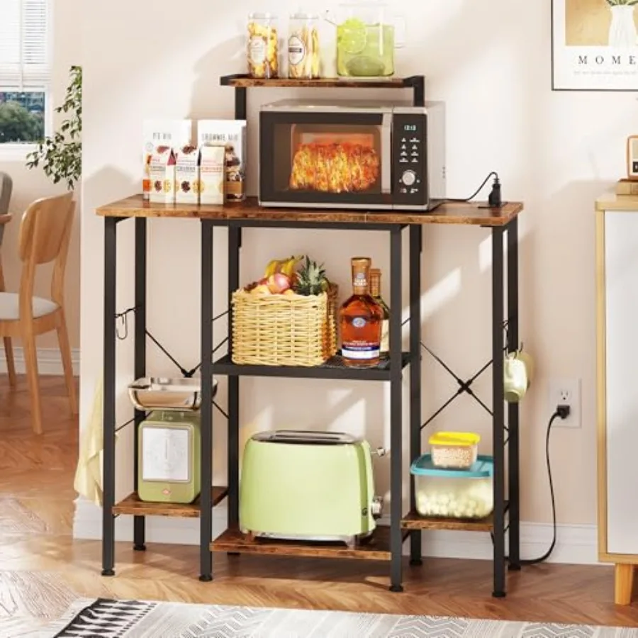 Bakers Rack with Power Outlet Coffee Bar with 4 Hooks 6 Tiers Microwave Stand with Storage Freestanding Kitchen Appliance Organ $63.36